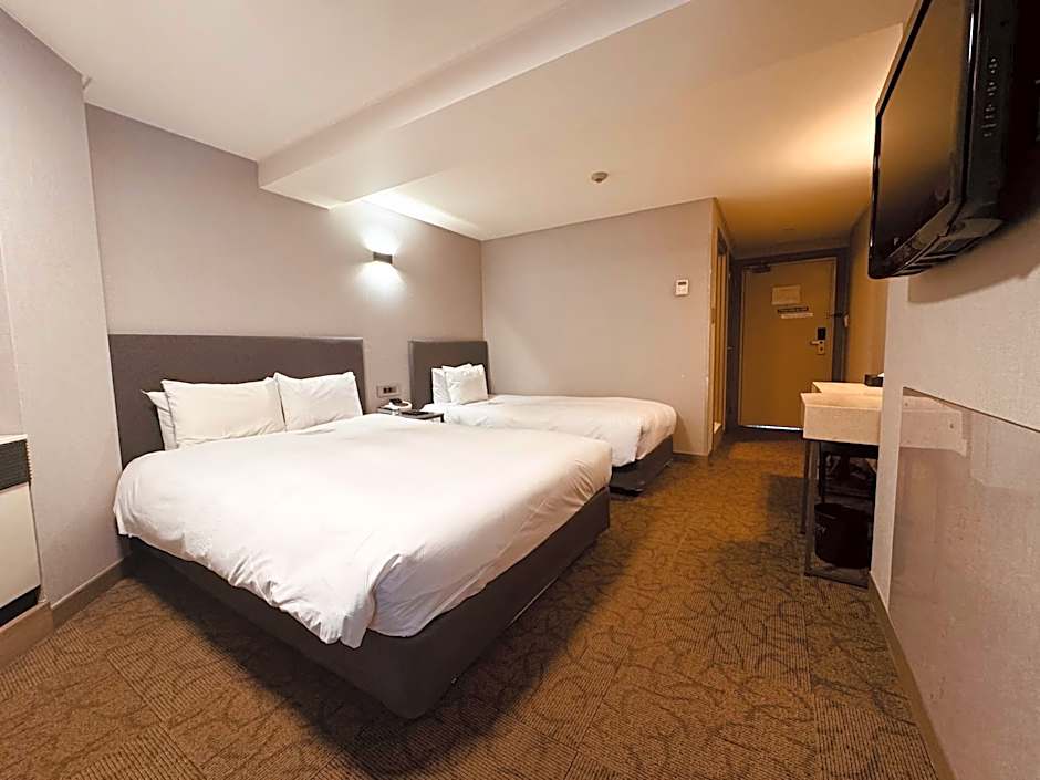 The quadruple room includes a private bathroom, well-fitted with a bath, a shower, a bidet, a hairdryer and slippers. The spacious air-conditioned quadruple room offers a flat-screen TV with cable channels, a tea and coffee maker, a wardrobe, a safe deposit box as well as city views. The unit offers 2 beds.